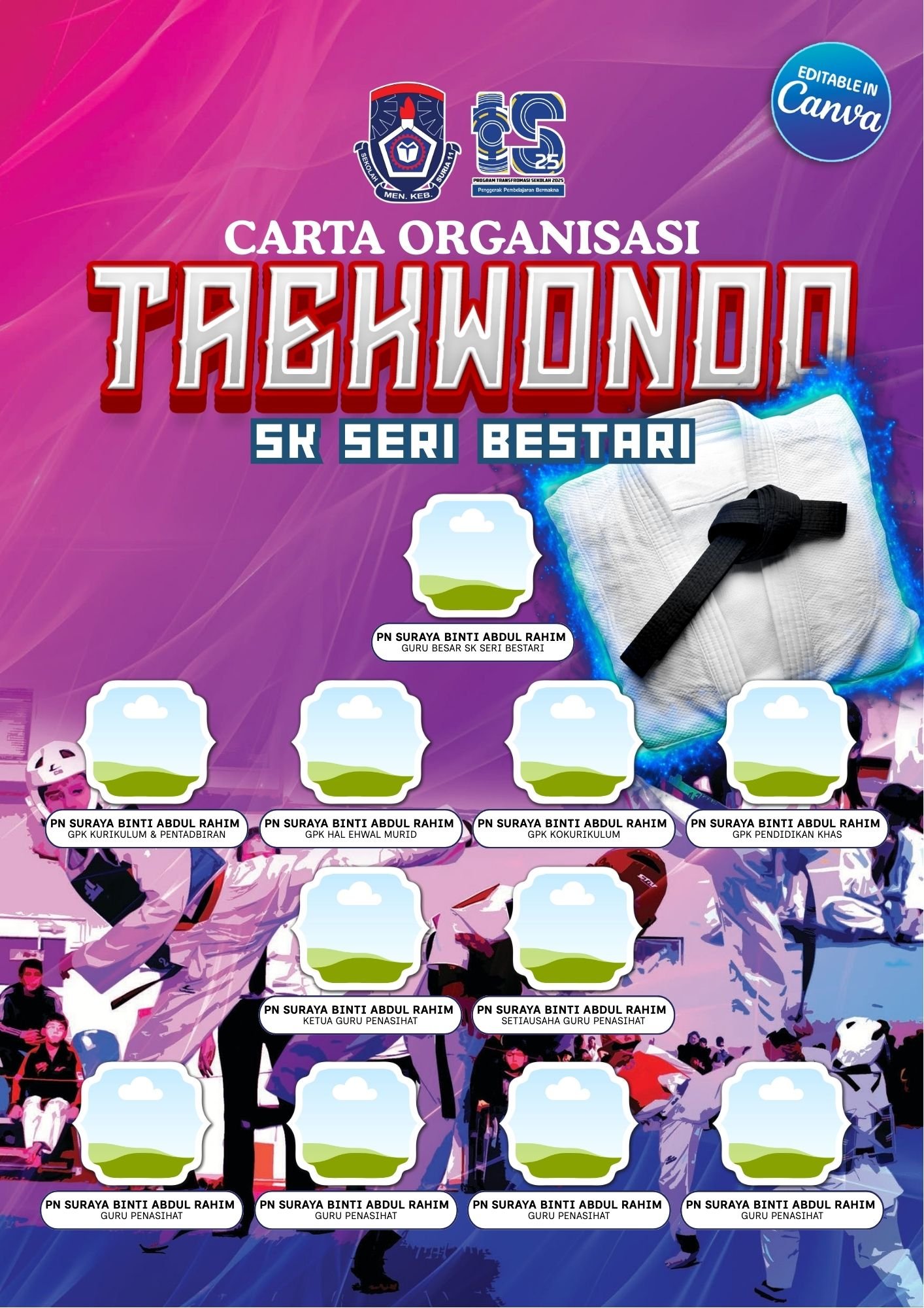 Template Carta Organisasi Sukan Permainan Taekwondo yang kemas dan boleh terus edit di CANVA.